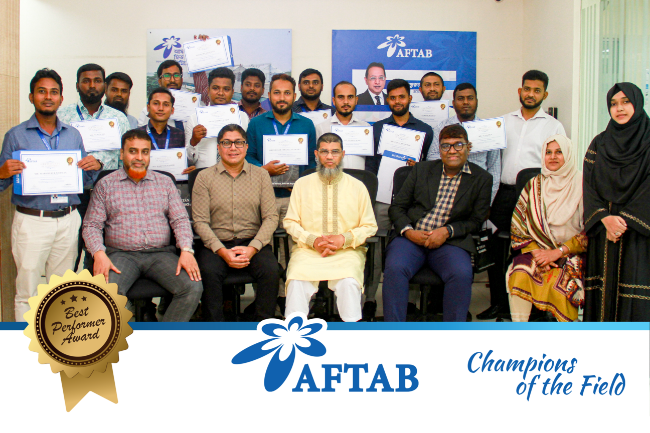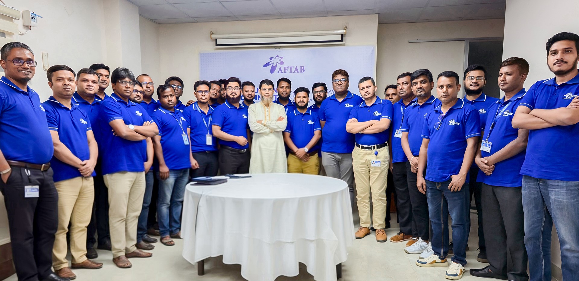 Starting the Bangla New Year in the AFTAB wayโwith vision, leadership, and unity! It was an AFTAB-solely inspiring morning as we welcomed the Pohela Baishakh alongside our Senior Group Director, Mafida Islam Ma'am. Her presence added a special spark to our new beginnings at AFTAB. Joined by our powerhouse leadershipโCEO Md. Mahabubur Rahman Sarker, CFO Mohammad Mahmud Hasan, and our dedicated GMs and Headsโwe are ready to make an AFTAB success story!